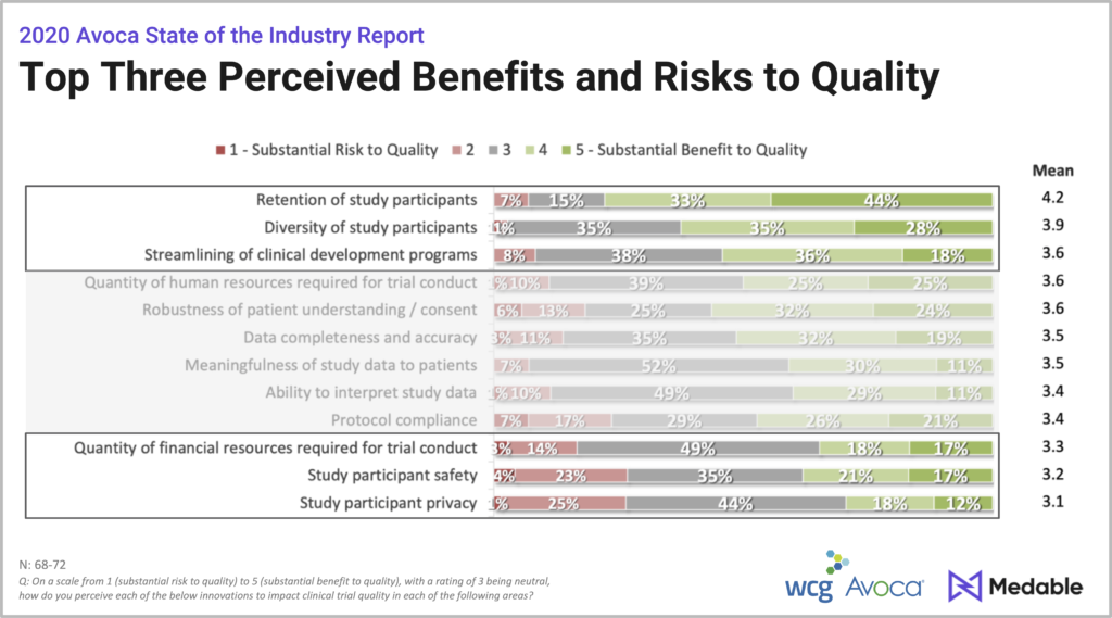 - 27% identified study participant safety as a risk to quality, while 38% identified it as a benefit.