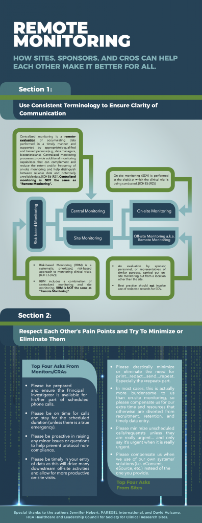 Figure 1. David Vulcano, HCA Healthcare and Leadership Council for Society for Clinical Research Sites, and Jennifer Hebert, PAREXEL, created this diagram to define and outline the relationship between the types of monitoring.