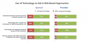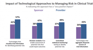 The answer to this question is both good and bad. Approximately half of providers say the approaches are having a “very positive” impact (Figure 2). Sponsors were somewhat weaker in their response, which may be due to the fact that they are in earlier stages of adoption of the technologies (Figures 1 & 2). That being said, a significant proportion of both sponsors and providers do not see technology as having a “very positive” impact on managing risk.