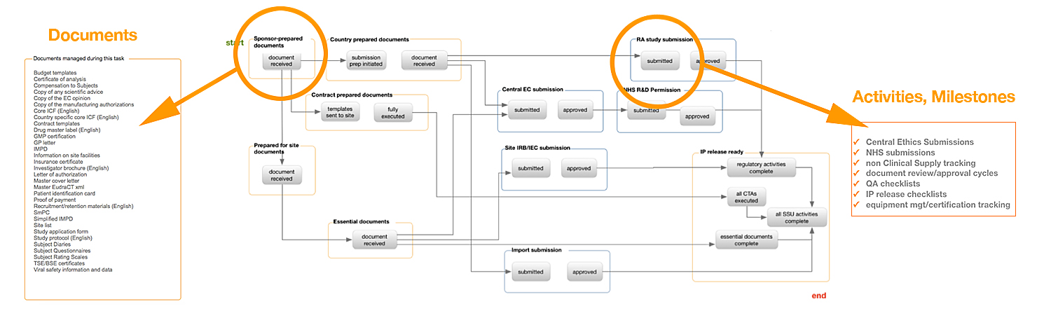 Through workflows, it is possible to launch the planning process by structuring artifacts specific to study activation, while facilitating the exchange of data among eClinical systems. With this capability, any and all needed documents can be defined. Importantly, artifacts and documents can be created 17 weeks before site activation, making it possible to ensure the downstream quality and facilitate inspection readiness at the site level. Making this process change can yield significant improvements to study execution.