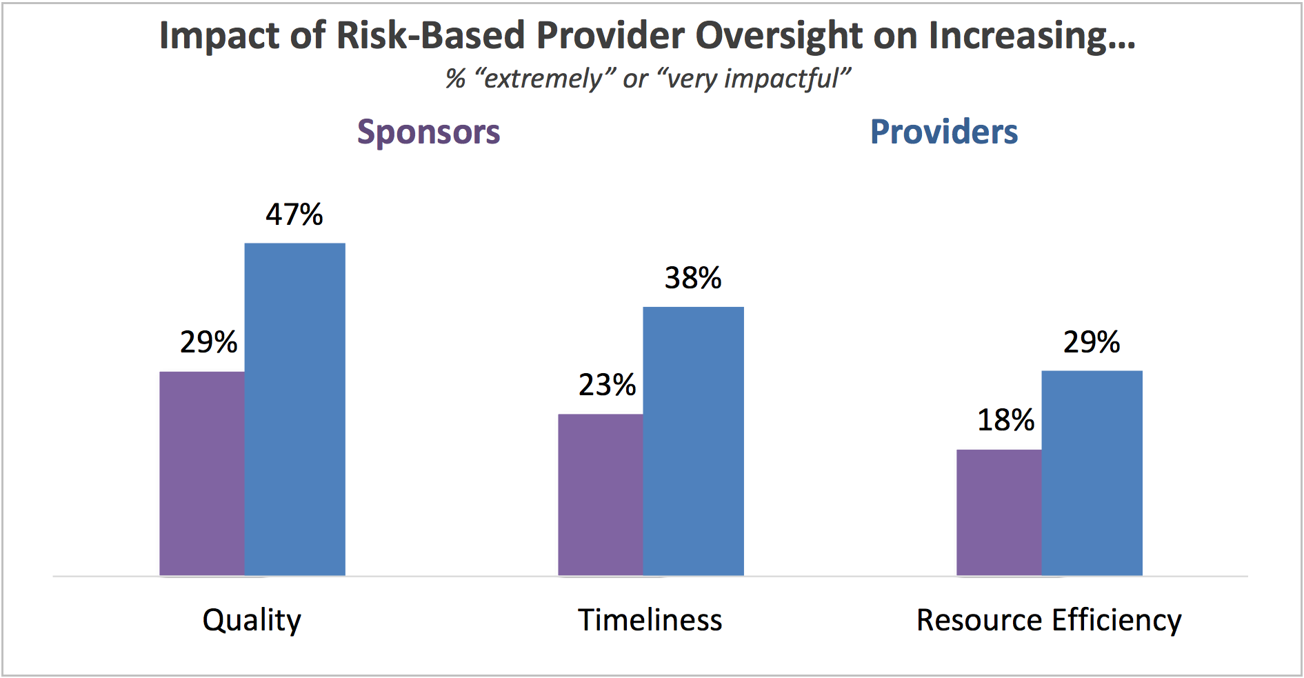 All that being said, what do sponsors and providers think about the impact of using risk-based provider oversight in terms of increasing quality, timeliness, and resource efficiency? The answer from both parties: not much.