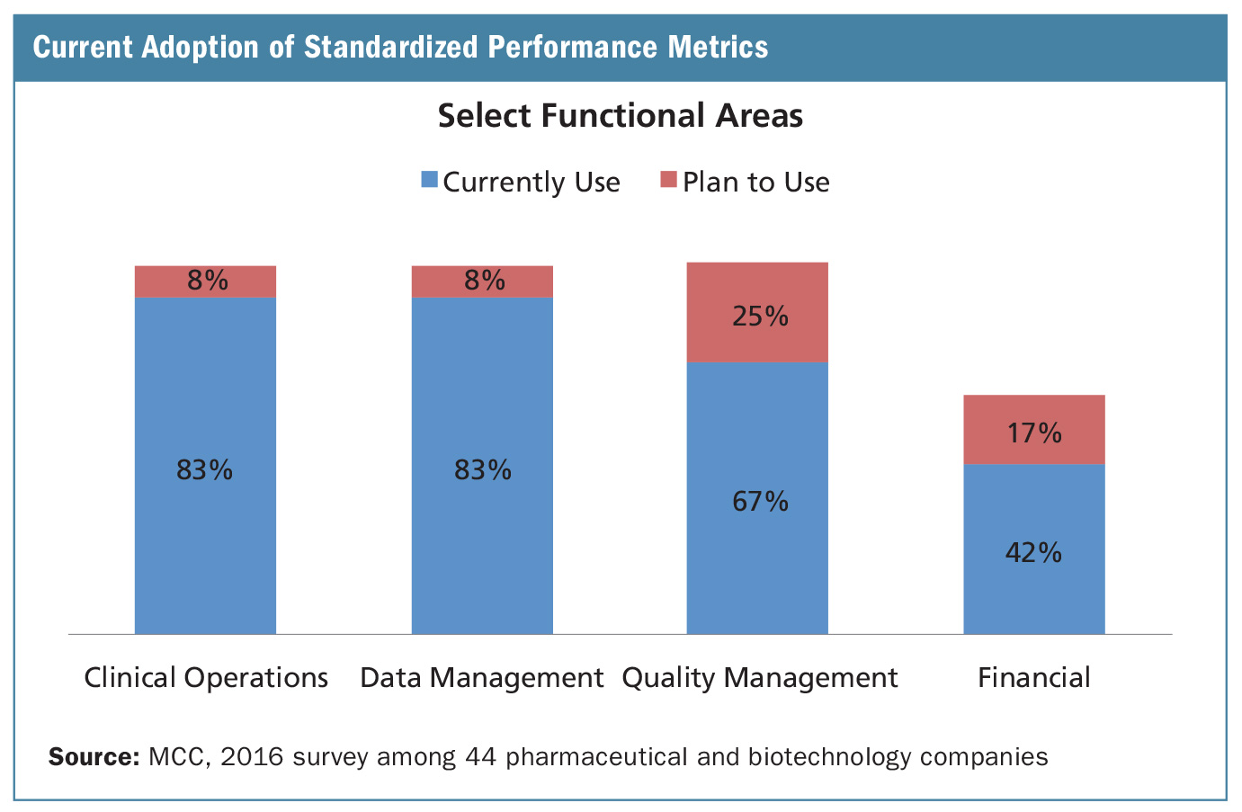 Although the drug development enterprise has been slow to adopt standardized performance and quality metrics definitions, progress has been made. Indeed, a new study just published by the MCC suggests that the majority of companies are now using a standard set of senior-management level key performance indicators (KPIs) and adoption of functional level standardized performance metrics has reached an inflection point.